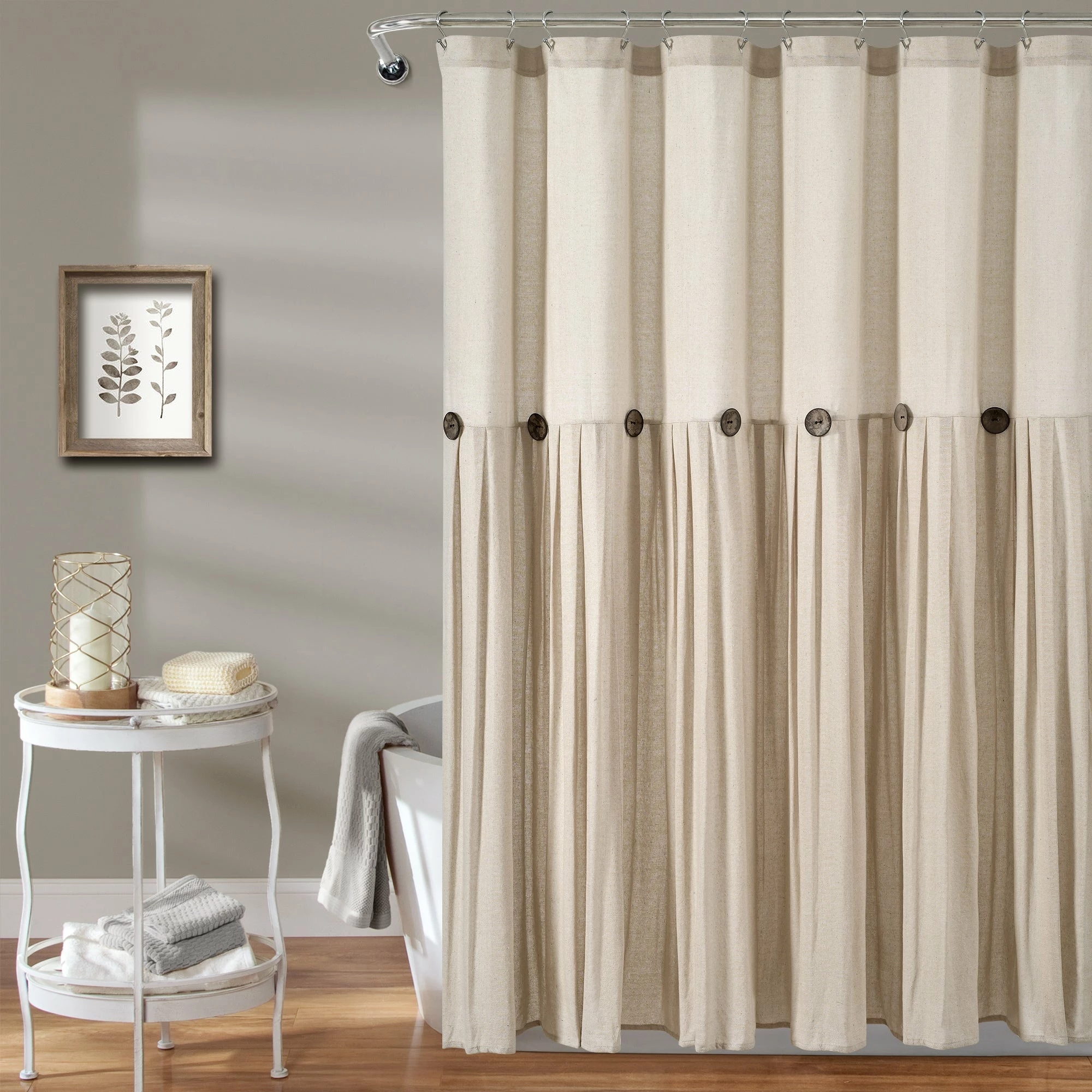 Give your bathroom the cool, contemporary flair it needs with this elegant shower curtain. Charming button embellishments and pleating offer a unique, casual design creates an inviting and stylish curtain. Choose from various two-tone color options to best match your space.