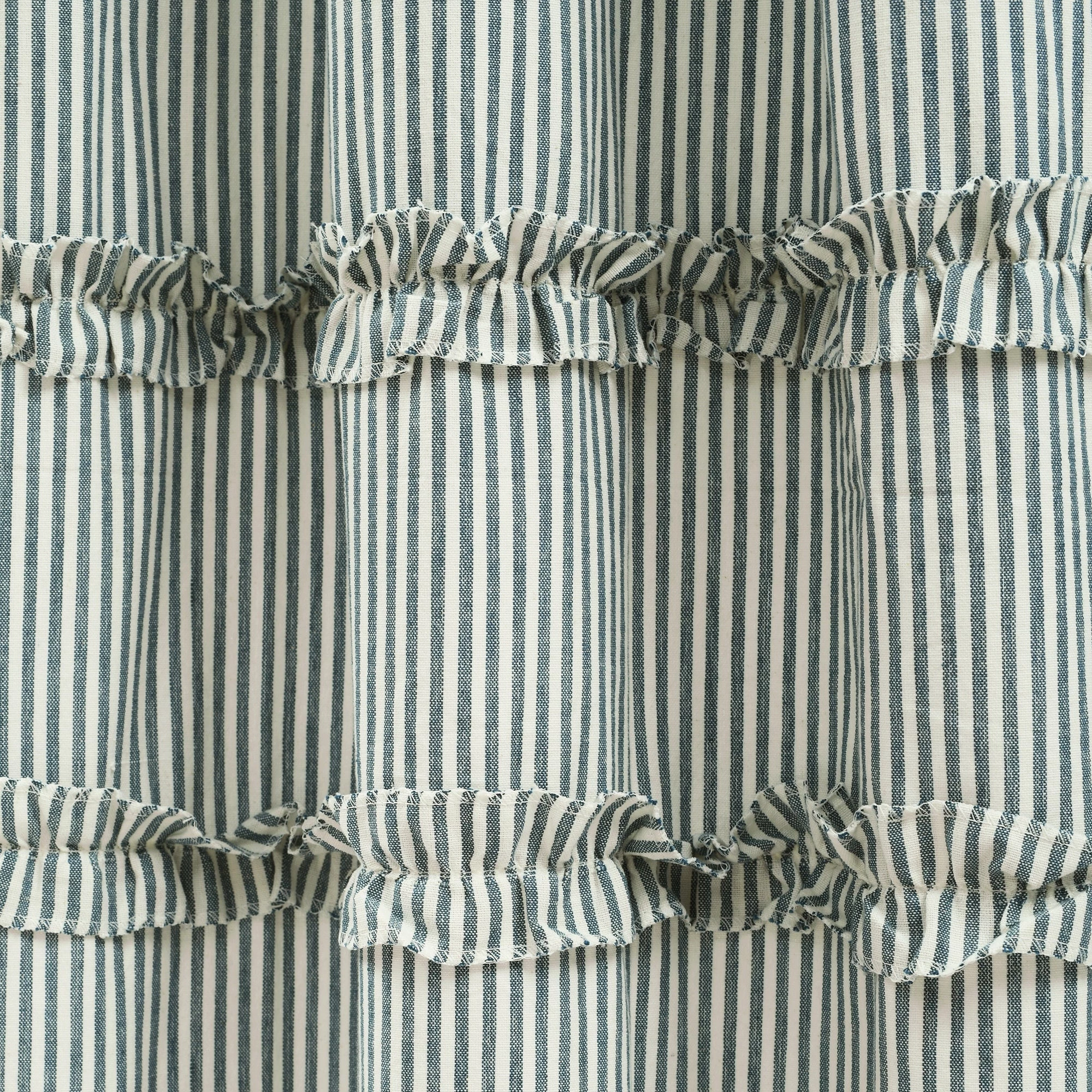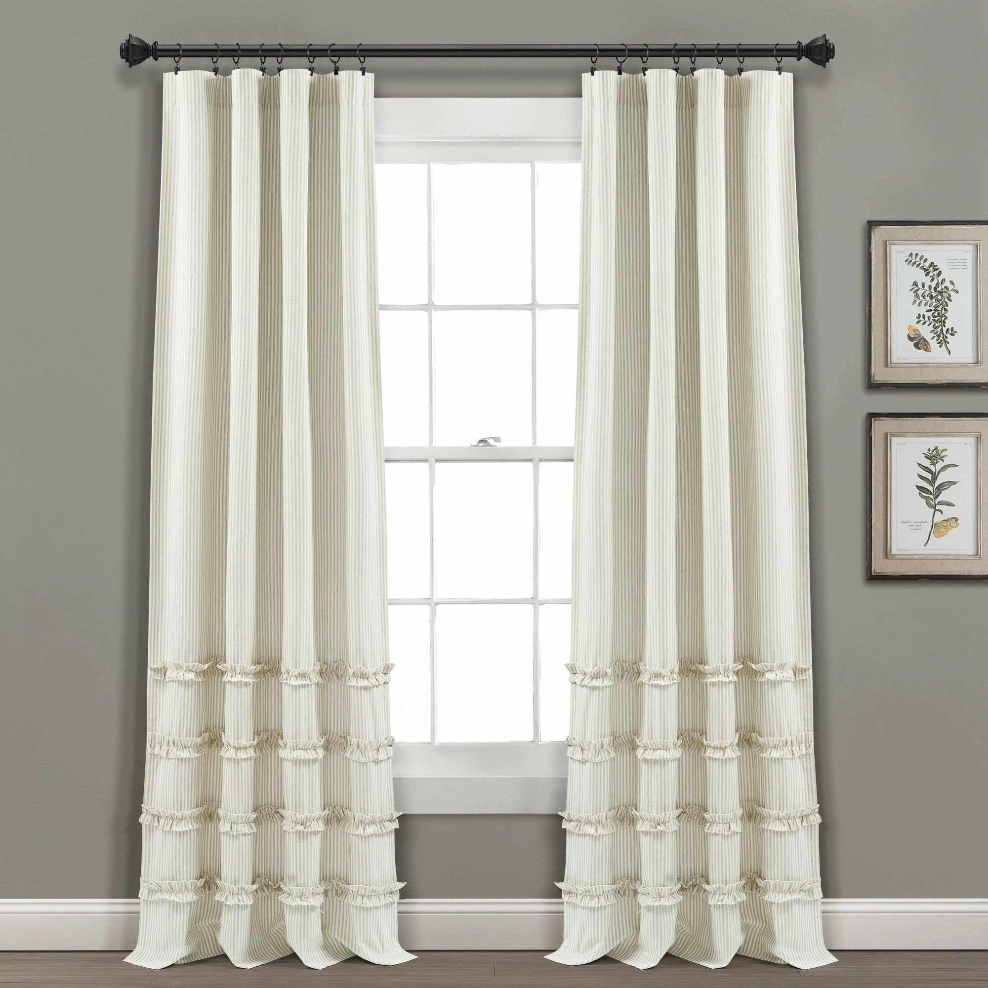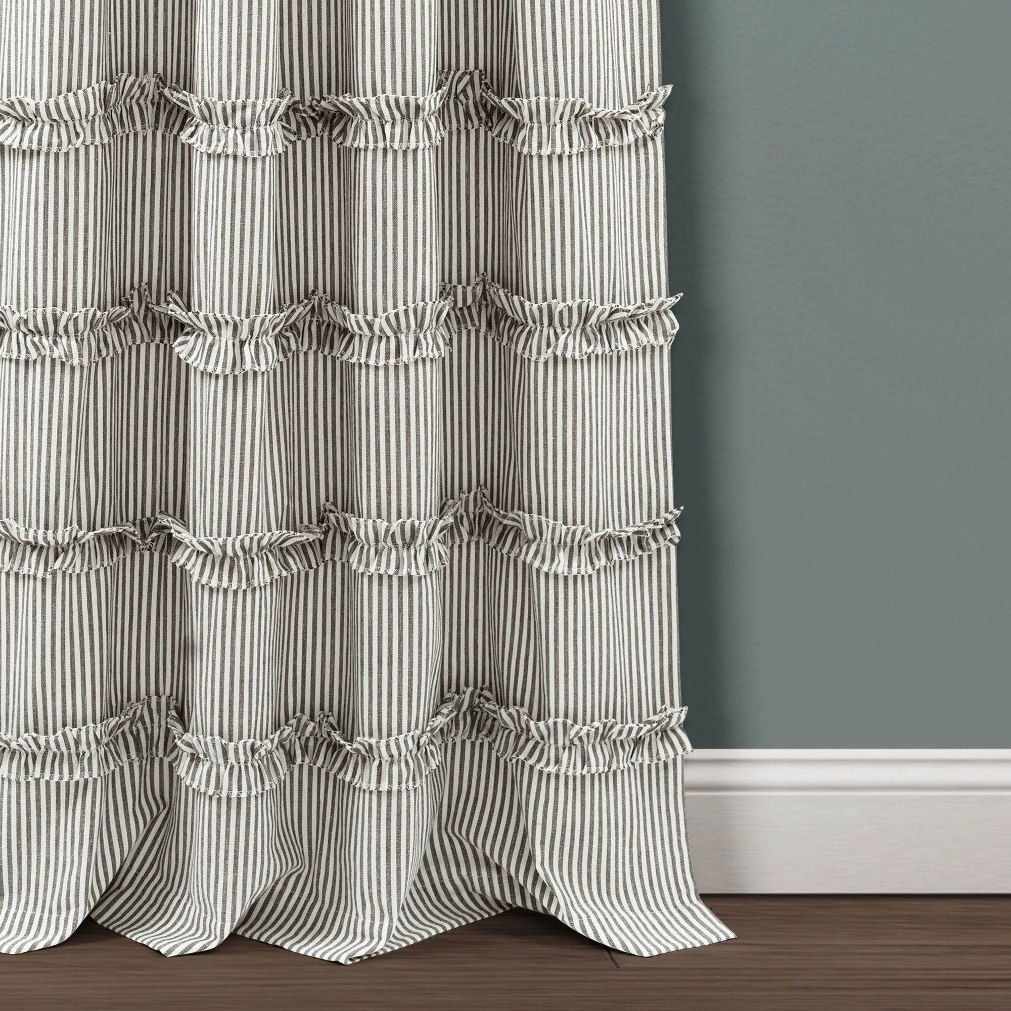 Lend a French Country look to your living room with this gorgeous curtain panel set from Lush Decor. Made from 100-percent cotton with a striped pattern and bottom ruffles, these panels are durable and soft with a vintage appeal. With 3-inch rod pockets to enable easy hanging, these panels filter light to create a soothing ambiance.
